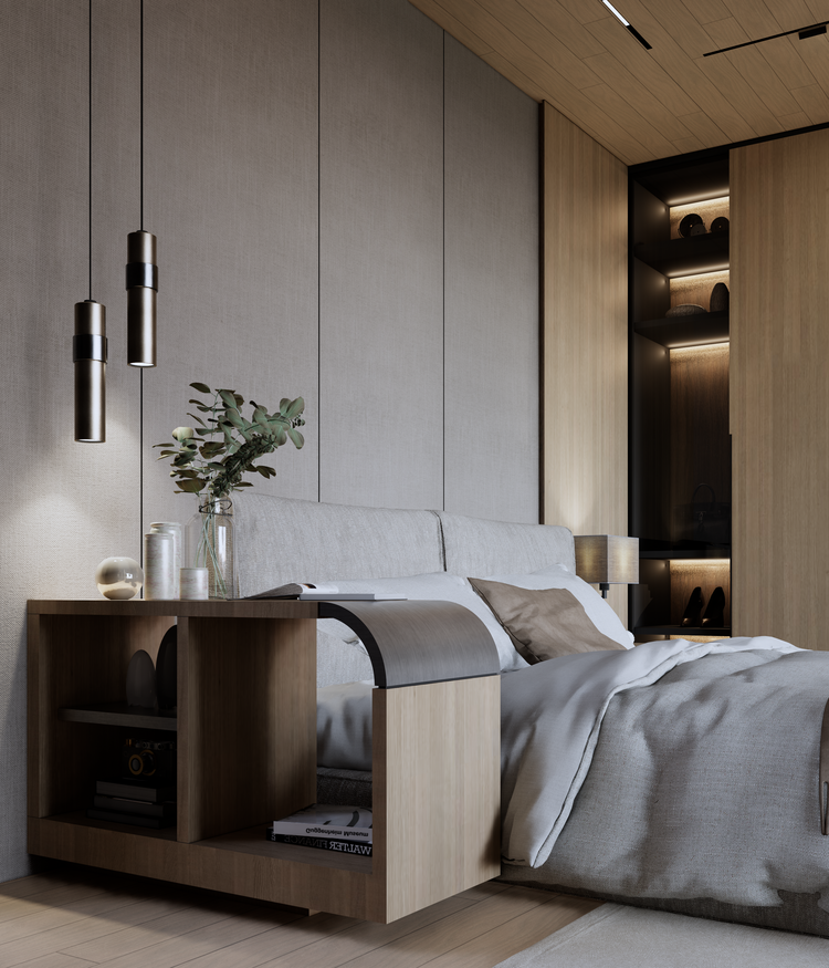 Warm wood tones and subtle lighting,